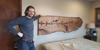 This custom piece was created using the customer's slab, felled from their family home's back yard, milled and dried here in Stillwater. I flattened and surfaced the slab, made the bowties, cut their mortises and glued them in place, flushed them to the surface, completed the surfacing process, finished, and installed the piece.